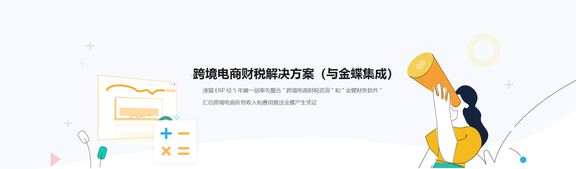 随着《电商法》的实施,跨境电商财税合规犹如达摩克利斯之剑,速猫ERP经5年磨一剑率先整合"跨境电商财税咨询"和"金蝶财务软件",兼容金蝶k3\金蝶k3 wise \金蝶云星空等版本,汇总跨境电商所有收入和费用推送金蝶产生凭证
